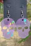 Holo purple skull dangle earrings hypoallergenic/nickle free